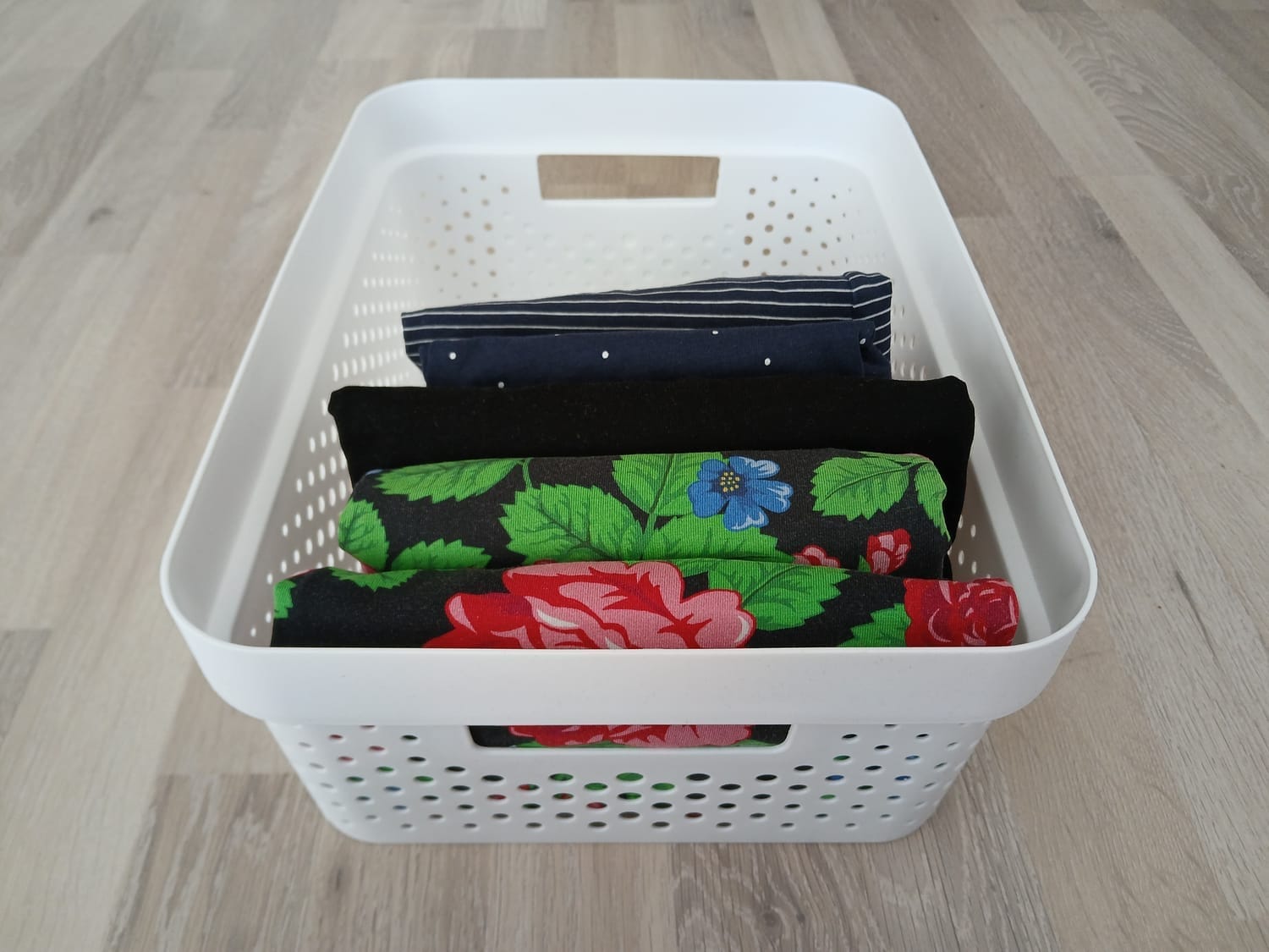 Jos viikkaaminen ei ole juttusi, voit hyvin säilyttää vaatteesi rennosti korissa